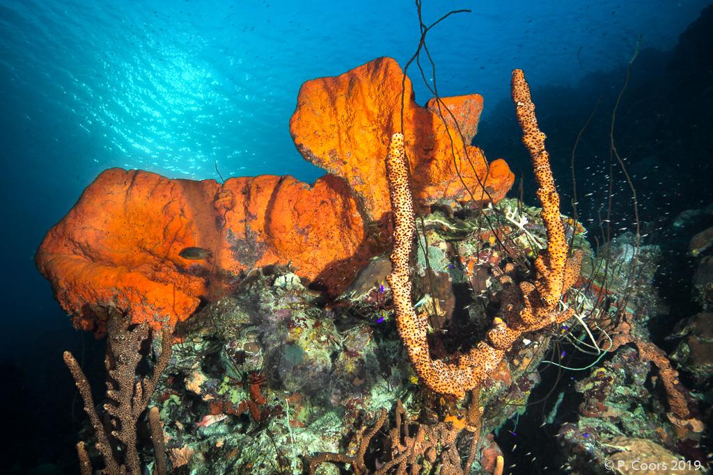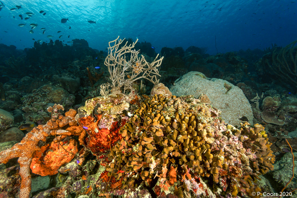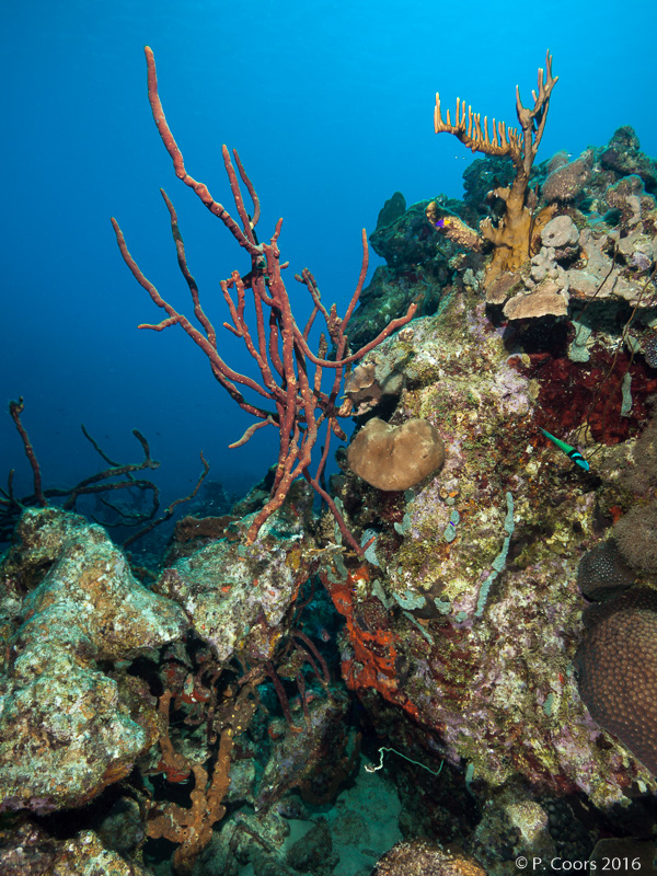In the south of Bonaire, shore dives are possible at almost any point of the fringing reef. Partly the plateau of the reef is very wide. The maximum depth of the dive sites is usually 30...35 m. Sometimes there is a second reef in front of the fringing reef.