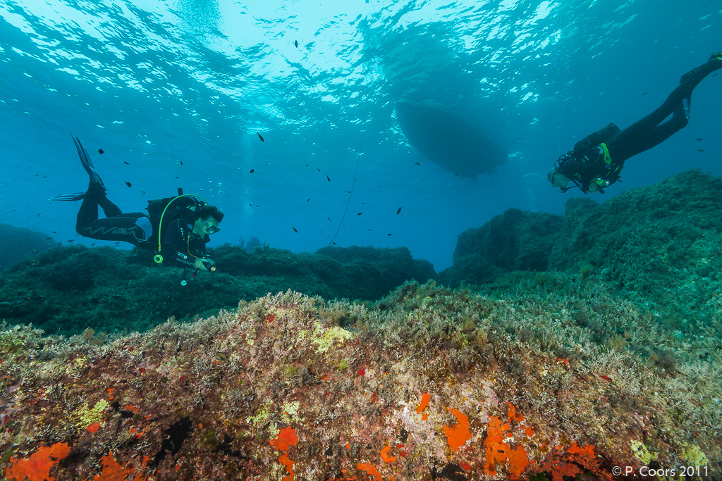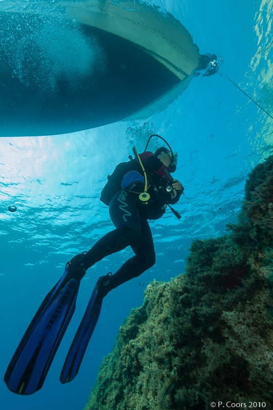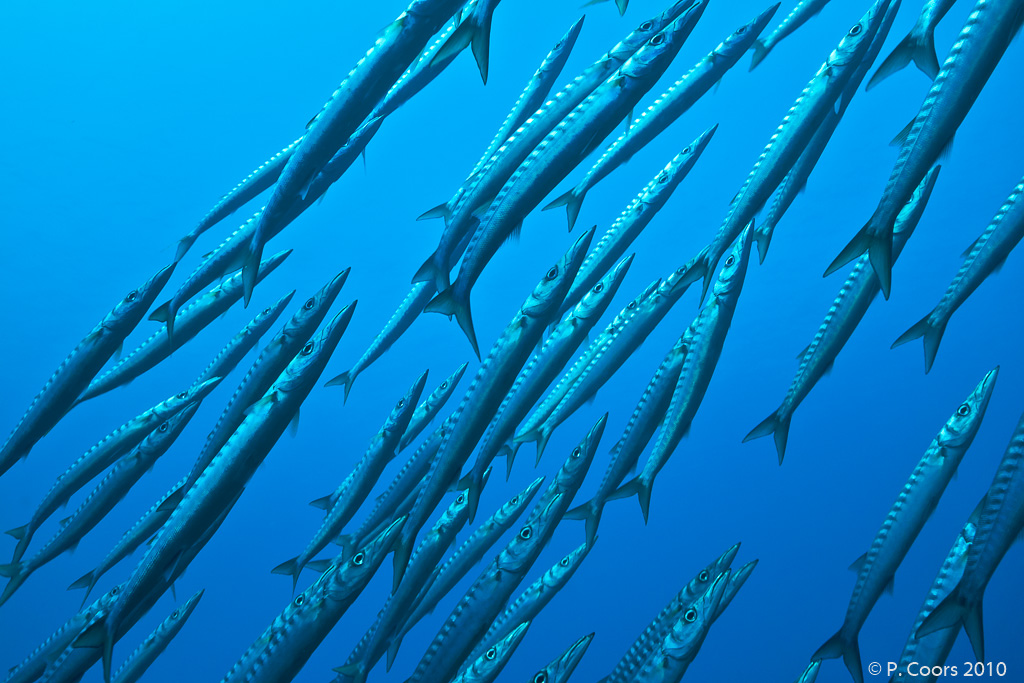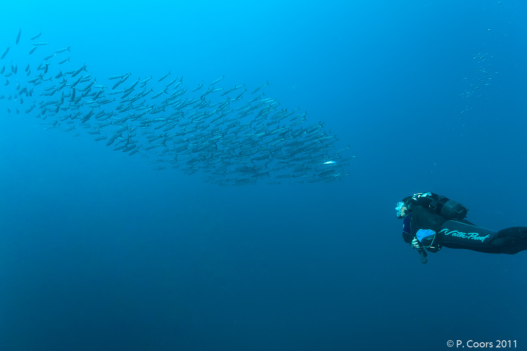 located at the west coast of Gozo, often a big group of barracudas can be observed