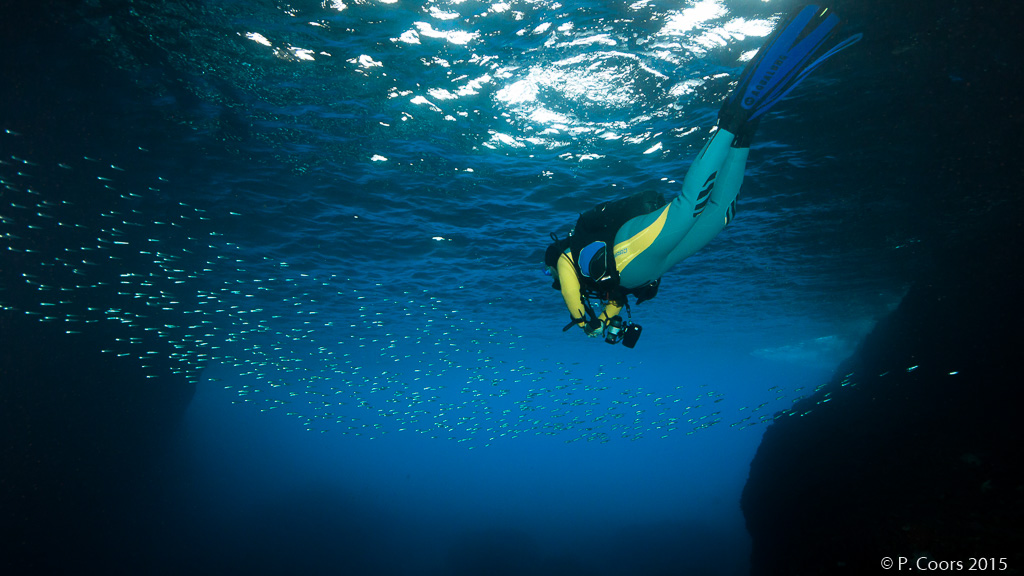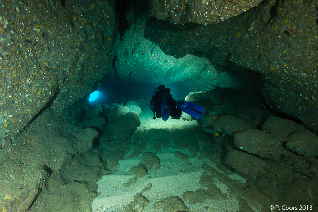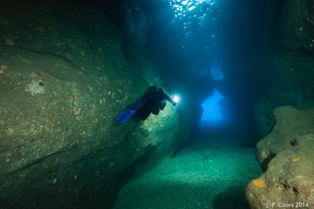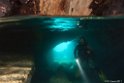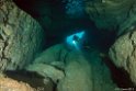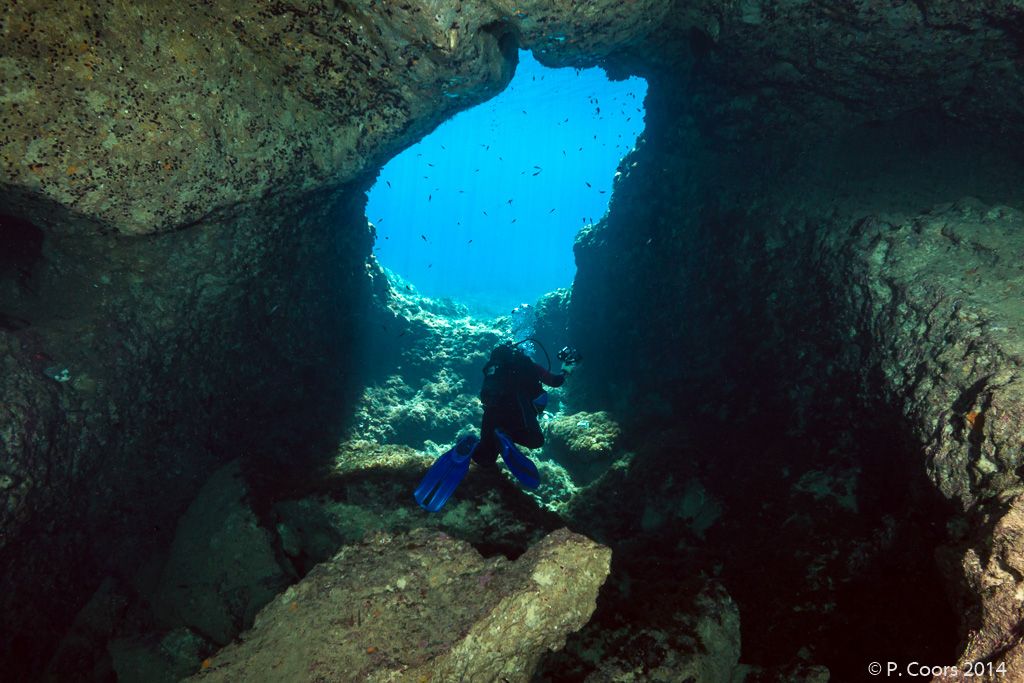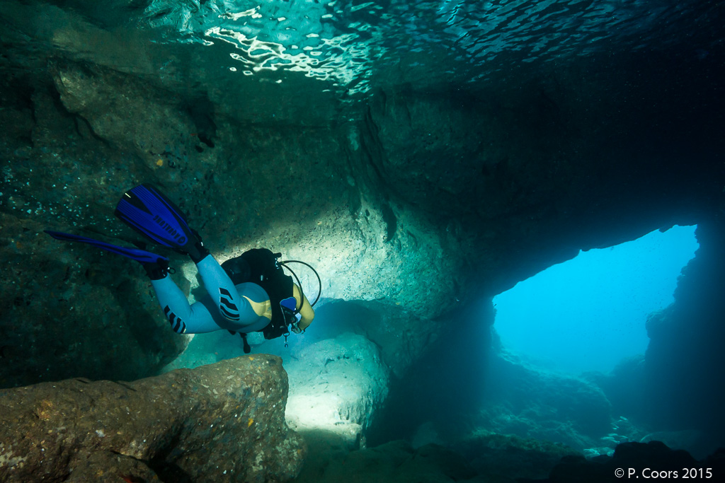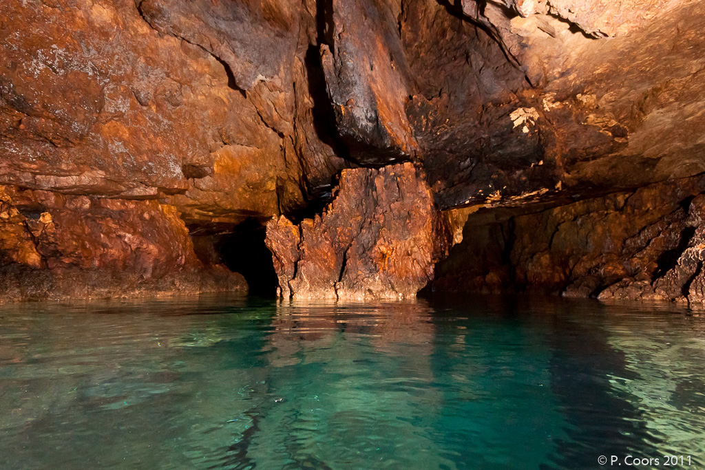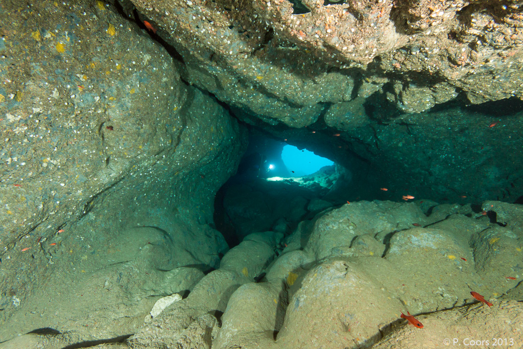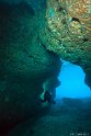 tunnel through the rock from Xlendi Bay to the open sea, partly open